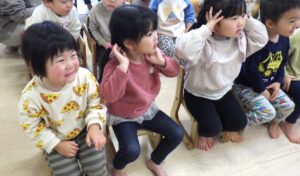様々な動物の鳴き声が聞こえると「いぬーーー!!」「ぶたー!!」など嬉しそうに答えてくれる子どもたちでした。