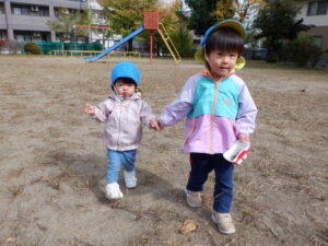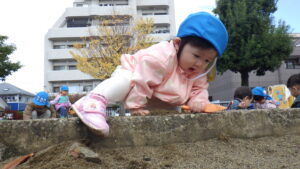 また、あんよやハイハイで公園内を探索して楽しむ姿も見られています。