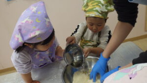 「こねこね~」「固まってきたよ!」