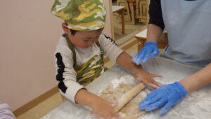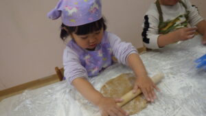 とても集中して生地を伸ばしているきらきらさん✨