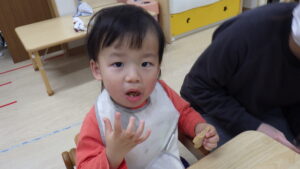 笑顔で握った手を、近くにいる保育士やお友だちに見せてくれました!