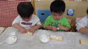 12月5日(金)ぴよぴよ組でスモアトースト作りのクッキングをしました!