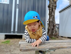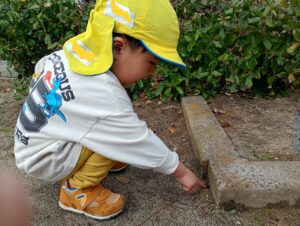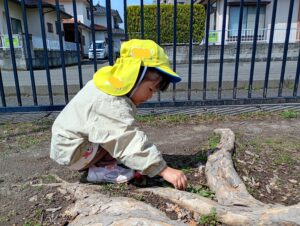 公園では、桜やたんぽぽの花を見つけて春を感じる姿や、アリの動きをじーっと見つめて観察する姿が見られています。