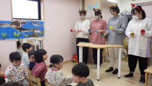 最後は、きらきら組(2歳児)による楽器の演奏です!