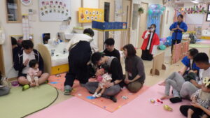 すやすやさんは、いつもとは違う雰囲気の保育園や先生たちの姿に緊張している様子が見られましたよ。